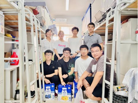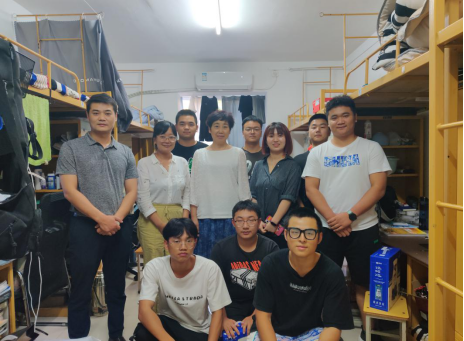 党委书记呼晓青和全体辅导员走进学生公寓,慰问假期留校学生,为他们送上象征团圆的月饼、牛奶和真挚的节日祝福。