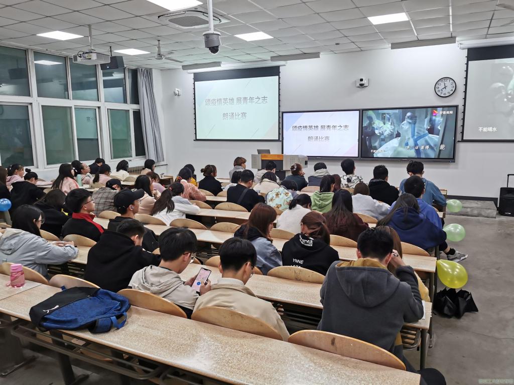 为培养青年学子良好的语感和表达能力,体会抗击疫情的艰辛,弘扬所有学子的爱国情怀,团委于2020年11月20日18:30在教二-102举办“颂疫情英雄,展青年之志”朗诵大赛。学院团委副书记周耀东、沈守峰,组织委员宋怡桦作为评委出席本次比赛。
